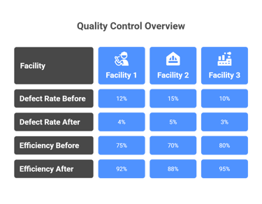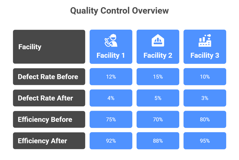 Case studies show that manufacturing programs achieved reductions in defect rates up to 47% when shift quality and monitoring were improved.