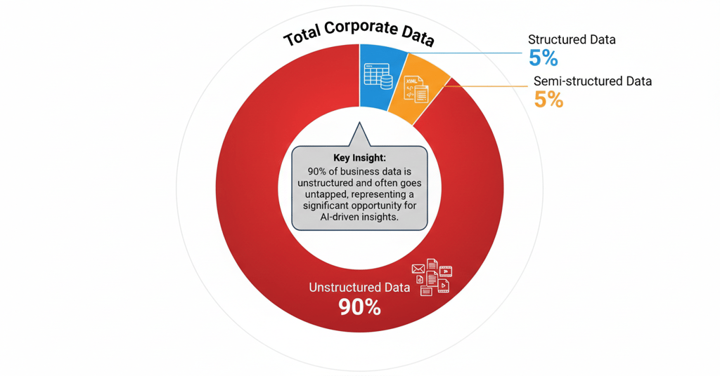 While structured data is useful, it only represents about 10% of your potential insights. The real challenge and opportunity, lies in the massive piles of unstructured information your company generates every day.