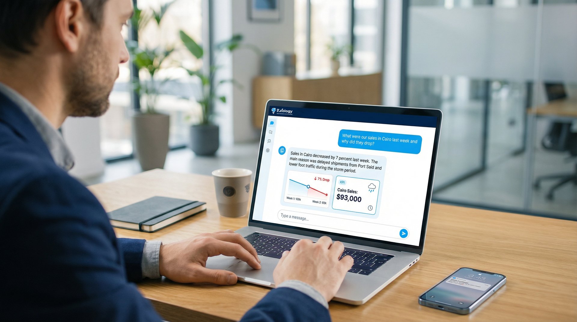 Exology turns information into action. We are experts in Business Intelligence and Data Analytics. We believe that while dashboards are the foundation of a data-driven company, Conversational BI is the future of accessibility. This is our bread and butter. We help businesses integrate AI into their data ecosystem to create seamless, chat-based interfaces that anyone can use.